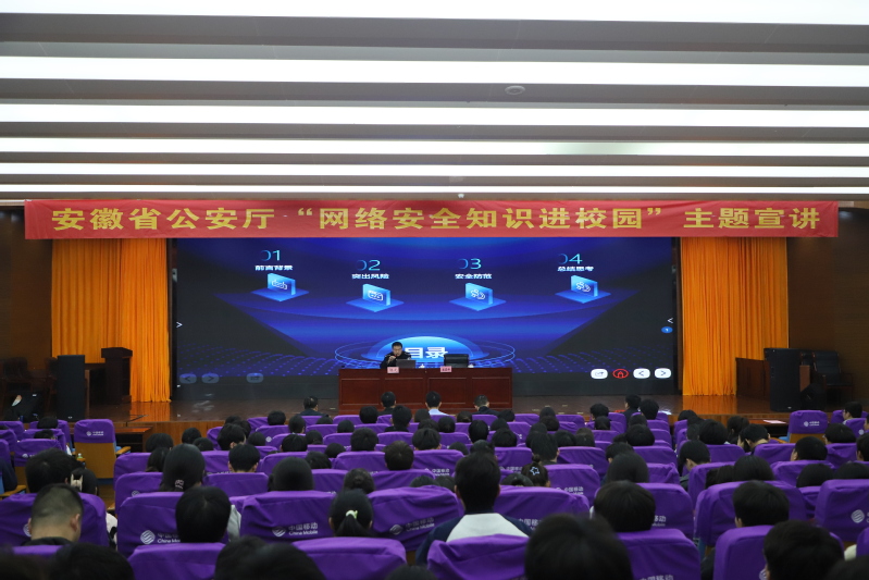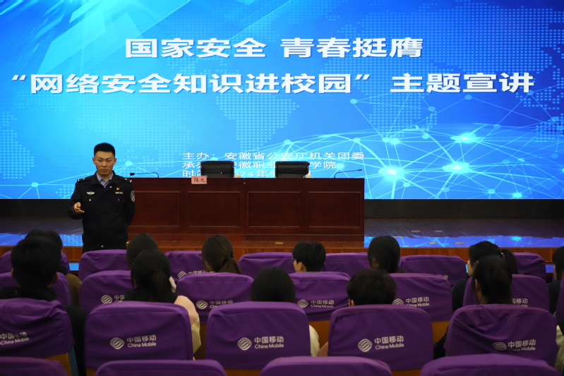 本网讯(团委通讯员 蒯月亭)为全面贯彻总体国家安全观,推动国家安全宣传教育,营造人人讲网络安全的浓厚氛围,4月8日,安徽省公安厅“网络安全知识进校园”主题宣讲活动在亚星游戏网成功举办。省公安厅副厅长张东明、网络安全保卫处处长李晓留、网络安全保卫处政委张仕东、机关团委书记姚志博等领导莅临活动现场。学院党委书记李方泽,党委委员、副院长宣岩松出席活动。省公安厅机关党委(机关团委)有关同志,厅网安总队有关负责同志、团支部青年民警,合肥市公安局网安支队、新站区网安大队有关负责同志,学院相关职能部门、二级学院负责人,各学院团总支书记、学生代表等共同参加活动。活动由宣岩松主持。