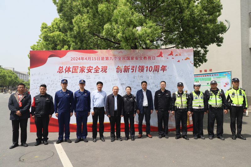 本网讯(保卫处通讯员 卫燕)今年是习近平总书记创造性提出总体国家安全观10周年。在第九个全民国家安全教育日到来之际,为增强师生国家安全意识和素养,厚植爱国主义情怀,4月15日,学院邀请合肥市公安局新站分局国保大队、合肥市公安局交警支队新站大队、新站区消防救援大队和新站区高教基地派出所来院联合开展4·15全民国家安全教育日暨普法宣传进校园活动。院领导李方泽、张智清、宣岩松、李荣富出席活动,保卫处、团委以及各二级学院1000余名师生参加活动。