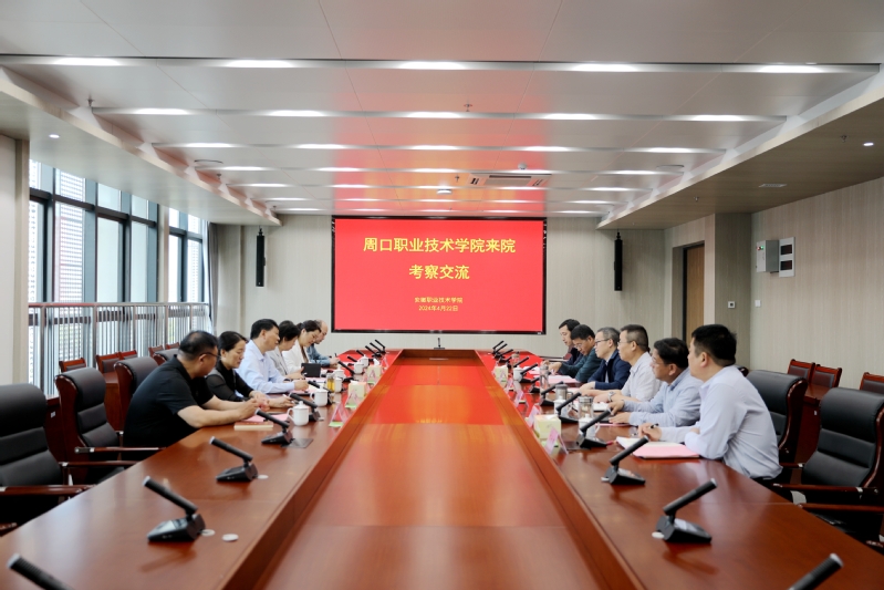 本网讯(办公室通讯员 姚旭)4月22日,周口职业技术学院党委副书记、院长李清臣一行来院考察交流。党委书记李方泽,党委副书记、院长盛鹏,党委委员、副院长宣岩松热情接待了李清臣一行,相关部门负责人参加座谈会。会议由盛鹏主持。