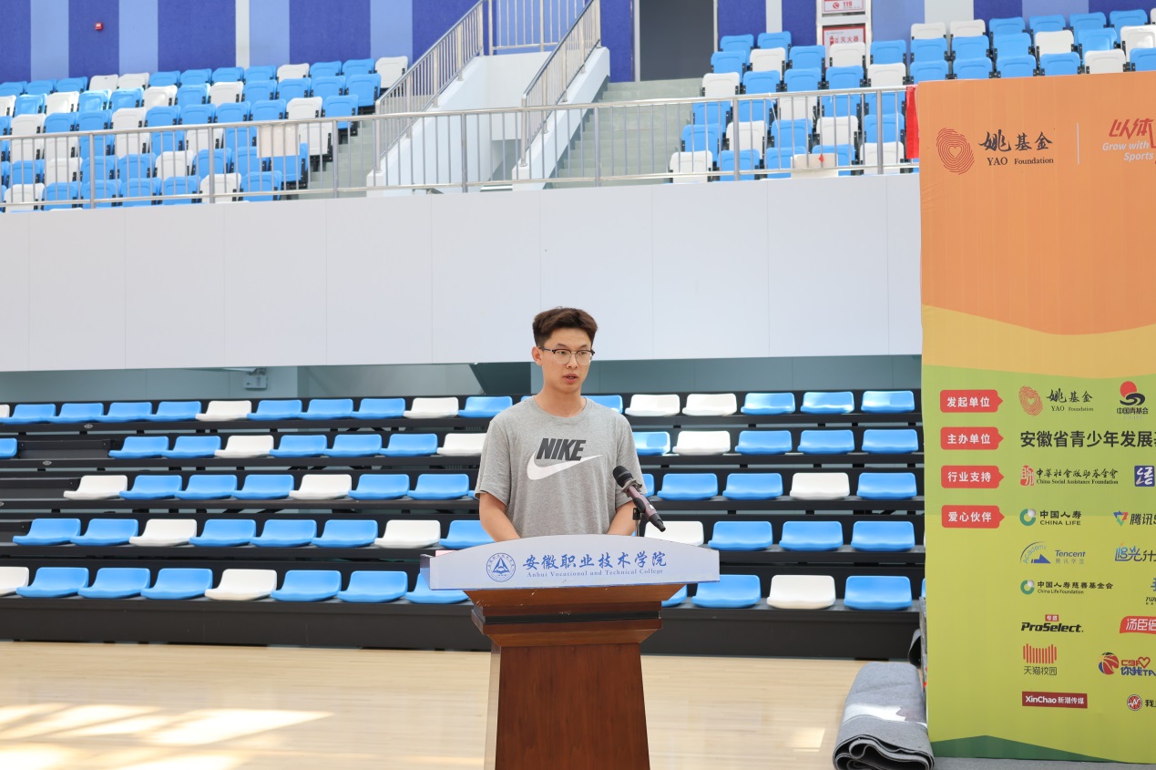 盛鹏为本次出征仪式致辞,他首先对24位同学的志愿支教服务精神表示赞扬,并指出本次是学院第二次选派支教志愿者参与到希望小学的篮球支教活动,对学院的发展意义重大,将进一步助力学院体育事业发展和“体育健康文化”的传播。最后,盛鹏对全体支教志愿者提出三点要求:一是志存高远,在志愿服务中坚定理想信念。积极践行习近平总书记寄语青年的希望和要求,高质量完成各项支教任务;二是严守纪律,在志愿服务中锤炼过硬本领。将自己在校学到的体育知识和篮球技能加以实践运用,帮助孩子们感受体育精神,享受运动快乐;三是以体育人,在志愿服务中诠释青春风采。将“在校日行8000步,为国服务50年,快乐健康100岁”的健康文化理念带到每一个支教点,以实际行动展现安职学子积极进取、健康向上的精神风貌。