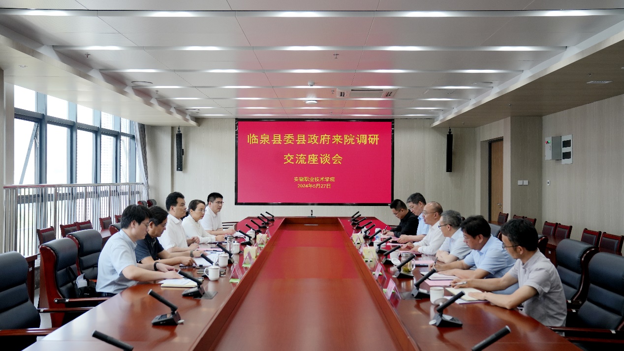 江利国对学院的热情接待表示感谢,并简要介绍了临泉县的基本情况及此行目的。他指出,安职代表着安徽职业教育的最高水平,取得的成绩受到社会广泛认可,此次来访主要是在校地合作、人才培养等方面开展深层次交流,希望双方共谋发展。蔡淑娜简要介绍了临泉县职业教育情况和办学优势,希望双方加强联系、共同进步。