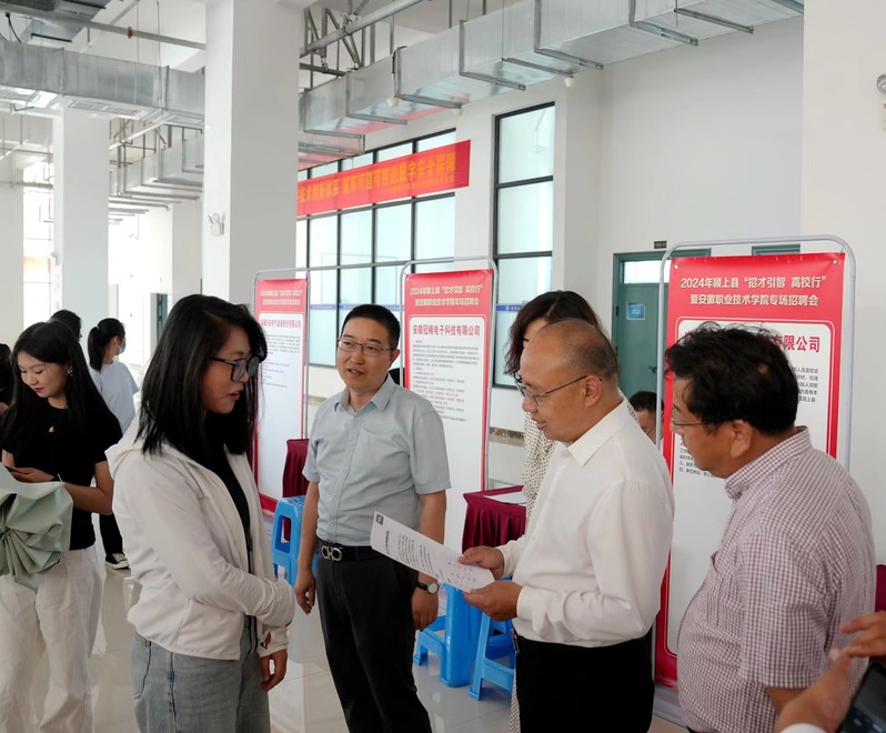 本网讯 为抢抓“百日冲刺”促就业时机,进一步发挥校园招聘主渠道作用,为毕业生提供优质就业招聘信息,5月29日,学院联合合肥市蜀山区人力资源和社会保障局成功举办蜀山区2024年“招才引智进高校”专场招聘会。院党委书记李方泽到场指导工作,相关部门及二级学院负责人、毕业班辅导员及1500余名毕业生参加招聘活动。