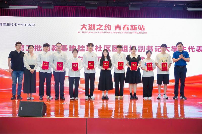 启动仪式上,团市委副书记洪欣,新站高新区党工委委员、党建工作部部长(组织人事局局长)卜红霞,新站高新区五大社区党委书记为高教基地挂职社区团组织副书记的大学生代表颁发任职证书。