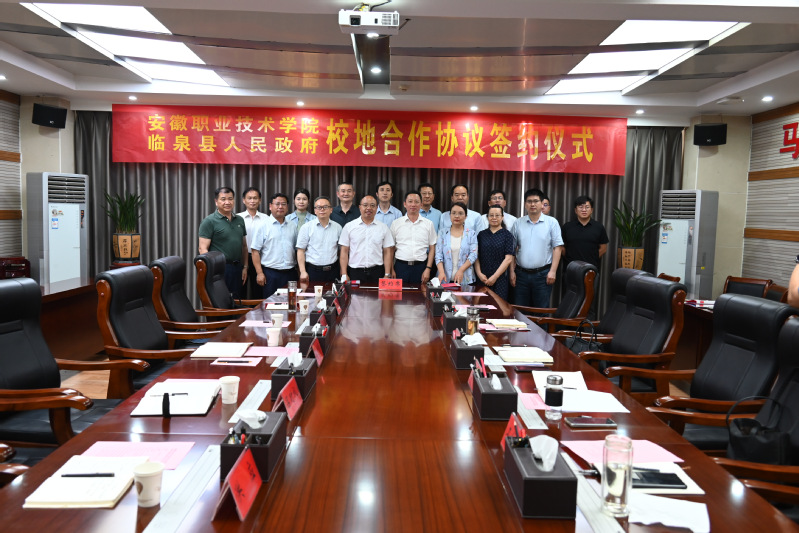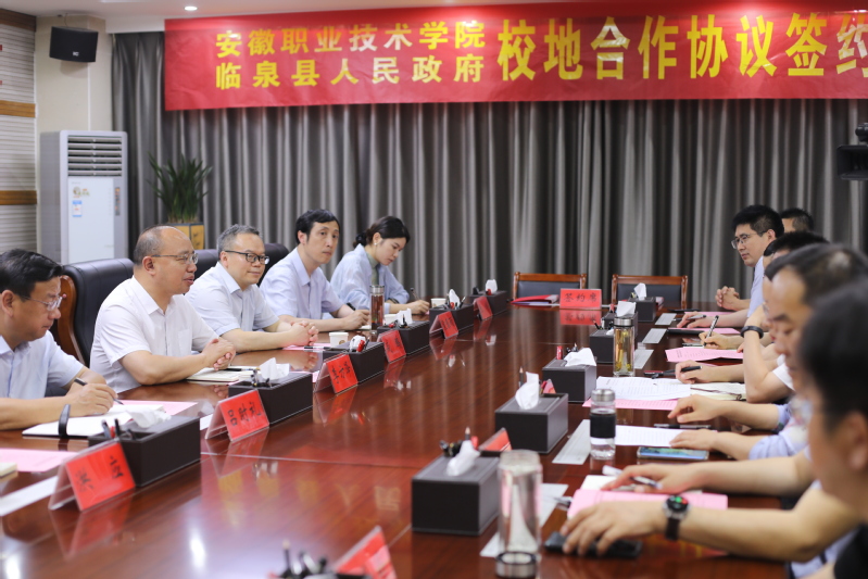 学院一行与临泉县人民政府就深入推进产教融合、校企合作、人才培养等方面展开座谈交流并签署校地合作协议。王飞虎对学院一行赴临泉县洽谈合作表示诚挚欢迎并重点围绕临泉历史文化、区位优势和资源优势等方面介绍了有关情况。