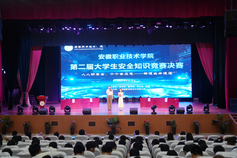 本网讯(保卫处)6月19日,在第23个全国“安全生产月”之际,为进一步普及安全知识,培育安全文化,巩固安全教育工作成效,保卫处联合宣传部、学生处、团委举办的学院第二届大学生安全知识竞赛在至立会堂举行。学院党委委员、副院长宣岩松出席活动。超星泛雅集团安徽分公司总经理康宝勤,学院宣传部、学生处、团委、保卫处、相关二级学院负责人以及各二级学院学生代表共计800余人参加活动。