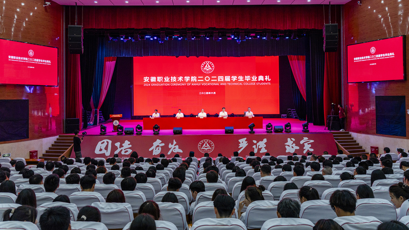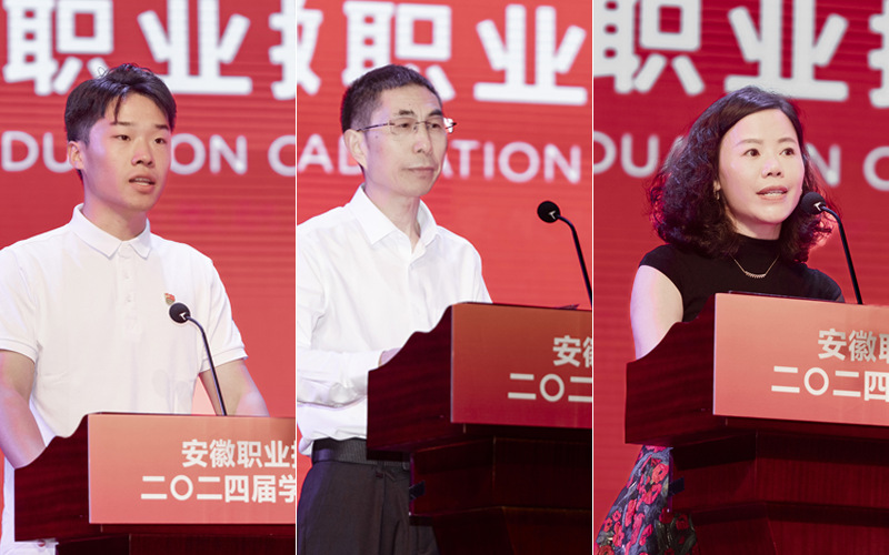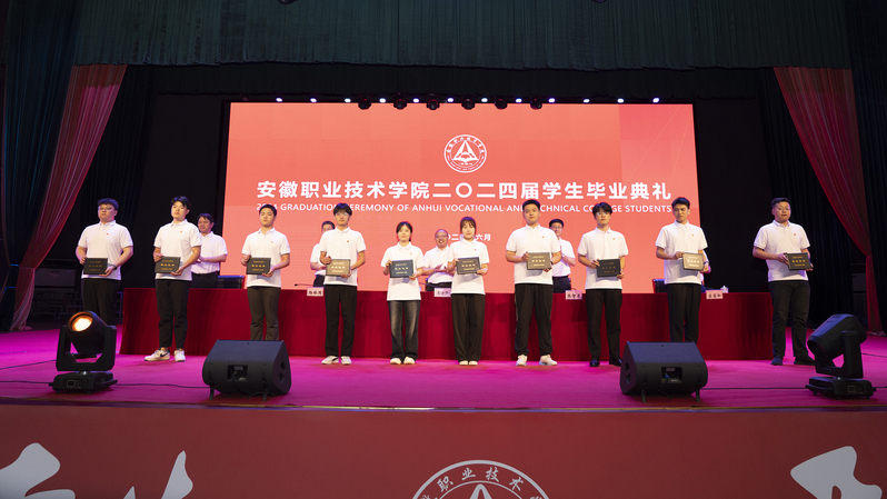 典礼上,党委委员、副院长杨林国宣读《关于表彰2024年安徽省普通高校优秀毕业生的决定》,党委委员、副院长宣岩松宣读《关于准予2024届学生毕业的决定》;院领导分别为毕业生代表颁发证书。