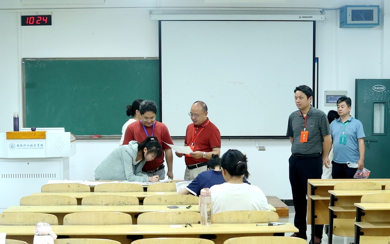 本网讯(教务处)7月4日上午,学院党委书记李方泽,党委委员、纪委书记李荣富深入考场巡视期末考试工作,教务处、相关二级学院负责人参加巡考。