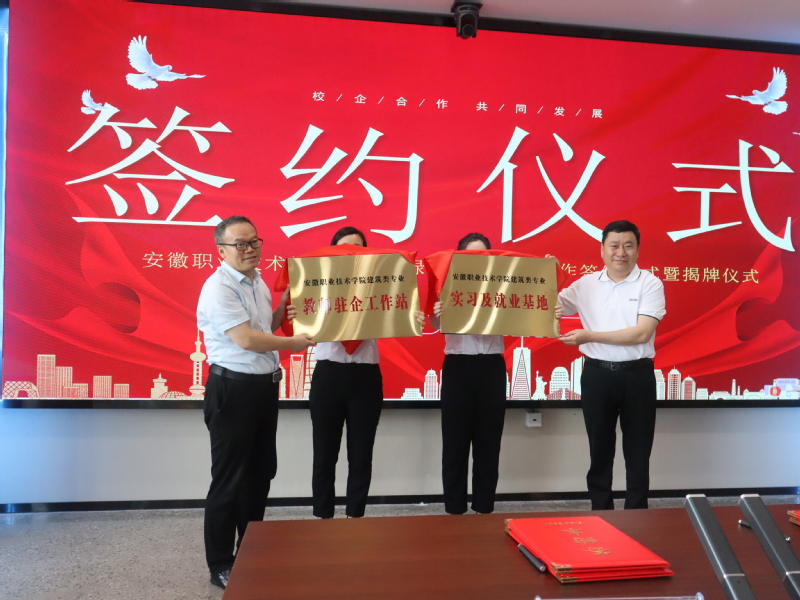 随后,盛鹏为安徽晶宫绿建集团授牌“亚星游戏网建筑类专业实习及就业基地”“亚星游戏网建筑类专业教师驻企工作站 ”,刘立超为亚星游戏网授牌“安徽晶宫绿建集团有限公司高技能人才培训基地”。仪式结束后,参会人员进行了合影留念。(文/谭海燕 图/陈馨怡)