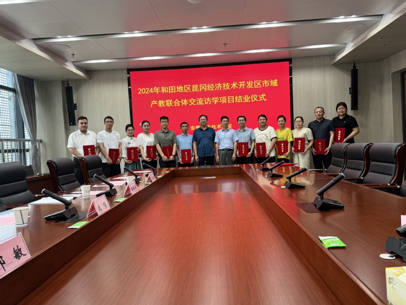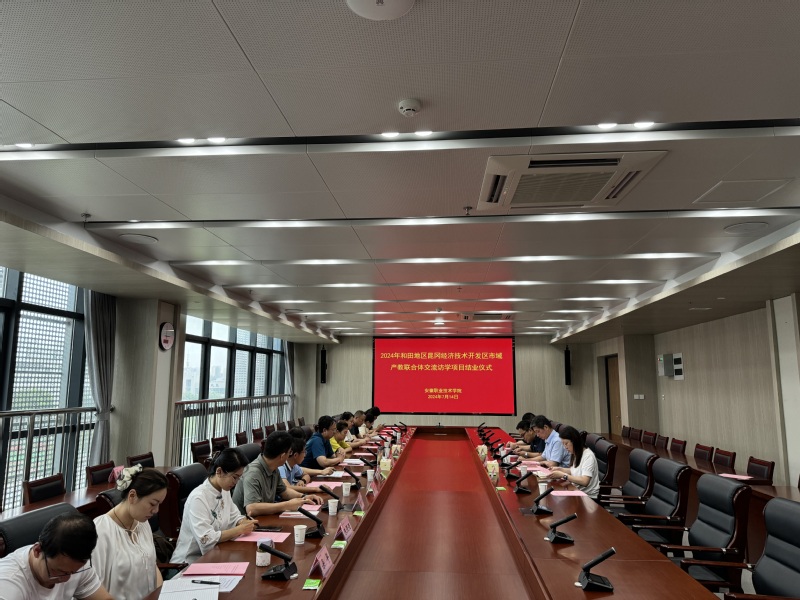 本网讯(教务处)7月14日,和田地区昆冈经济技术开发区市域产教联合体交流访学项目结业仪式在亚星游戏网隆重举行。和田职业技术学院党委书记王志文,学院党委委员、副院长杨林国出席会议,访学团成员及教务处相关工作人员参加会议,仪式由杨林国主持。