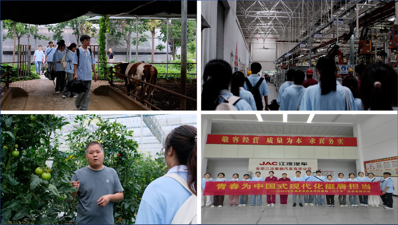 为深入调研蒙城县农村一二三产业融合发展助推乡村振兴现状,蒙城实践团走进安徽江淮安驰汽车有限公司,深刻体悟“自强不息、艰苦奋斗”的江汽精神。在蒙城县漆园肉牛养殖基地,实践团实地参观了基地“牧光互补”养殖模式,深入了解“公司+合作社+农户+金融机构”的合作模式。 在兴农绿港现代农业科技产业园新型农民培训基地,实践团就当前园区带动当地就业情况等方面开展交流,感受科技创新对农业发展的巨大推动作用。