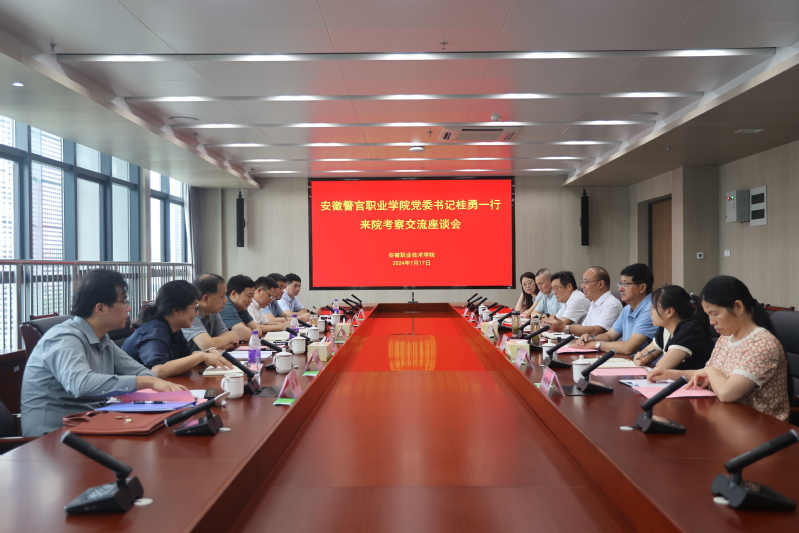 本网讯(办公室)7月17日,安徽警官职业学院党委书记桂勇,党委副书记、院长操申斌率队来亚星游戏网考察交流。院党委书记李方泽,党委委员、副院长张智清热情接待了桂勇一行,相关部门负责同志参加座谈会,会议由张智清主持。