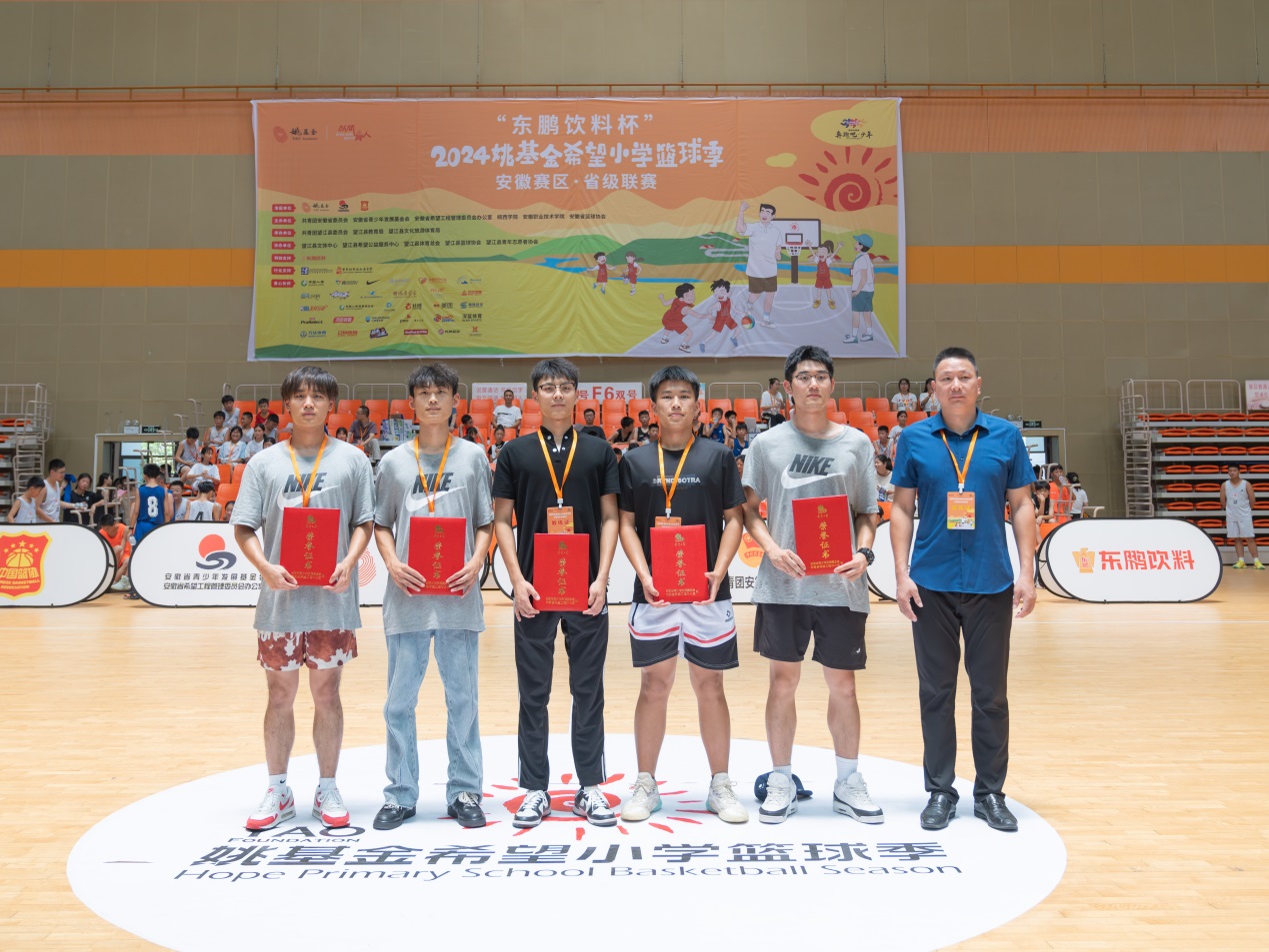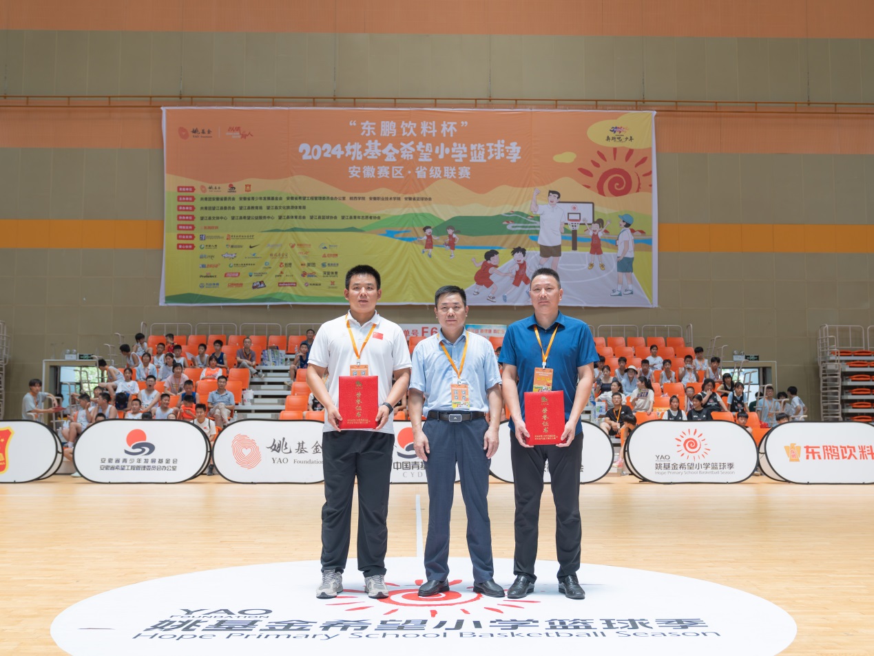 本网讯(体育健康学院)7月19日,2024姚基金希望小学篮球季安徽赛区省级联赛决赛暨闭幕式活动在安徽望江县文体中心馆举行,亚星游戏网荣获“2024姚基金希望小学篮球季”安徽赛区“特别支持单位”荣誉称号,亚星游戏网体育健康学院相关老师受邀参加闭幕式活动。