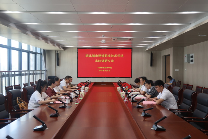 杨爱明对学院的热情接待表示衷心感谢,并介绍了湖北城市建设职业技术学院的发展概况和此行目的。他指出,安职院办学理念先进、文化氛围浓厚、办学设施完善、办学成果突出,期待两校开展深层次交流合作。陈晓春从历史沿革、办学特色、校园文化、发展态势、改革举措等方面介绍了学院的整体情况。会上,双方围绕高层次人才引进、人事管理等事宜进行了深入交流与探讨。