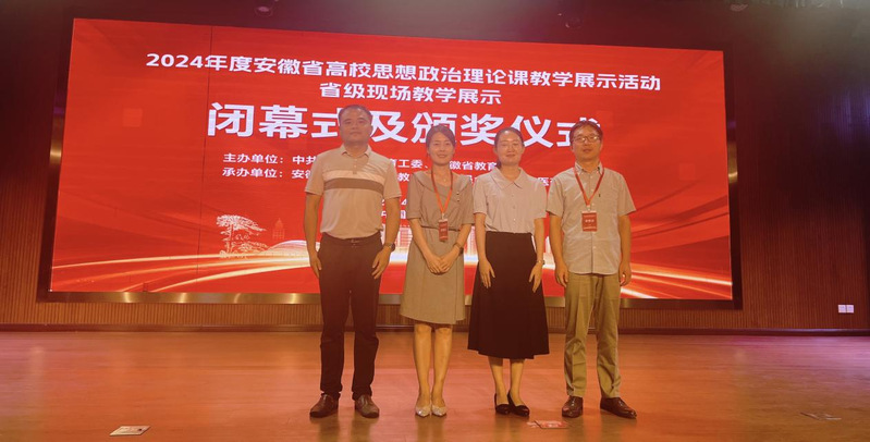本网讯(马克思主义学院)为深入学习贯彻习近平总书记在学校思想政治理论课教师座谈会上的重要讲话精神,切实提升全省高校思政课教师教育教学能力水平,8月7日至8日,由中共安徽省委教育工委、安徽省教育厅主办,安徽中医药大学承办的2024年度全省高校思政课教学展示活动省级现场教学展示在合肥成功举办。历经初赛网评阶段,亚星游戏网四名老师全部入围现场决赛,经过激烈角逐,俞海燕荣获“习近平新时代中国特色社会主义思想概论”课程组一等奖、郑娟荣获“思想道德与法治”课程组决赛一等奖,丁琦荣获“形势与政策”课程组二等奖、李祥祥荣获“毛泽东思想和中国特色社会主义理论体系概论”课程组二等奖。