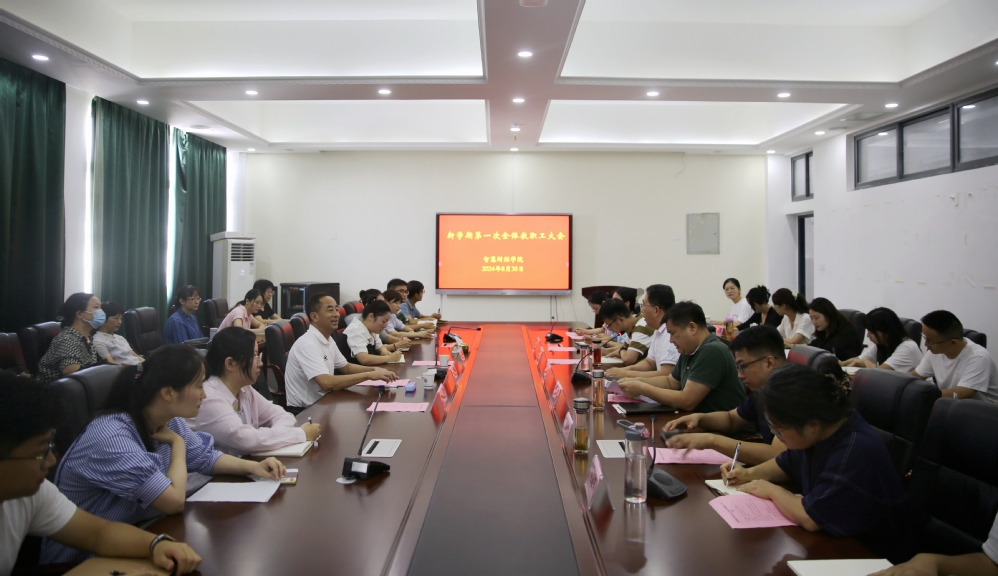 本网讯(智慧财经学院)8月30日,智慧财经学院召开2024年秋季新学期全体教职工大会。院党委委员、机关党委书记李瑞勇出席会议,学院党政领导班子成员、全体教职工参加会议,会议由智慧财经学院党总支负责人主持。