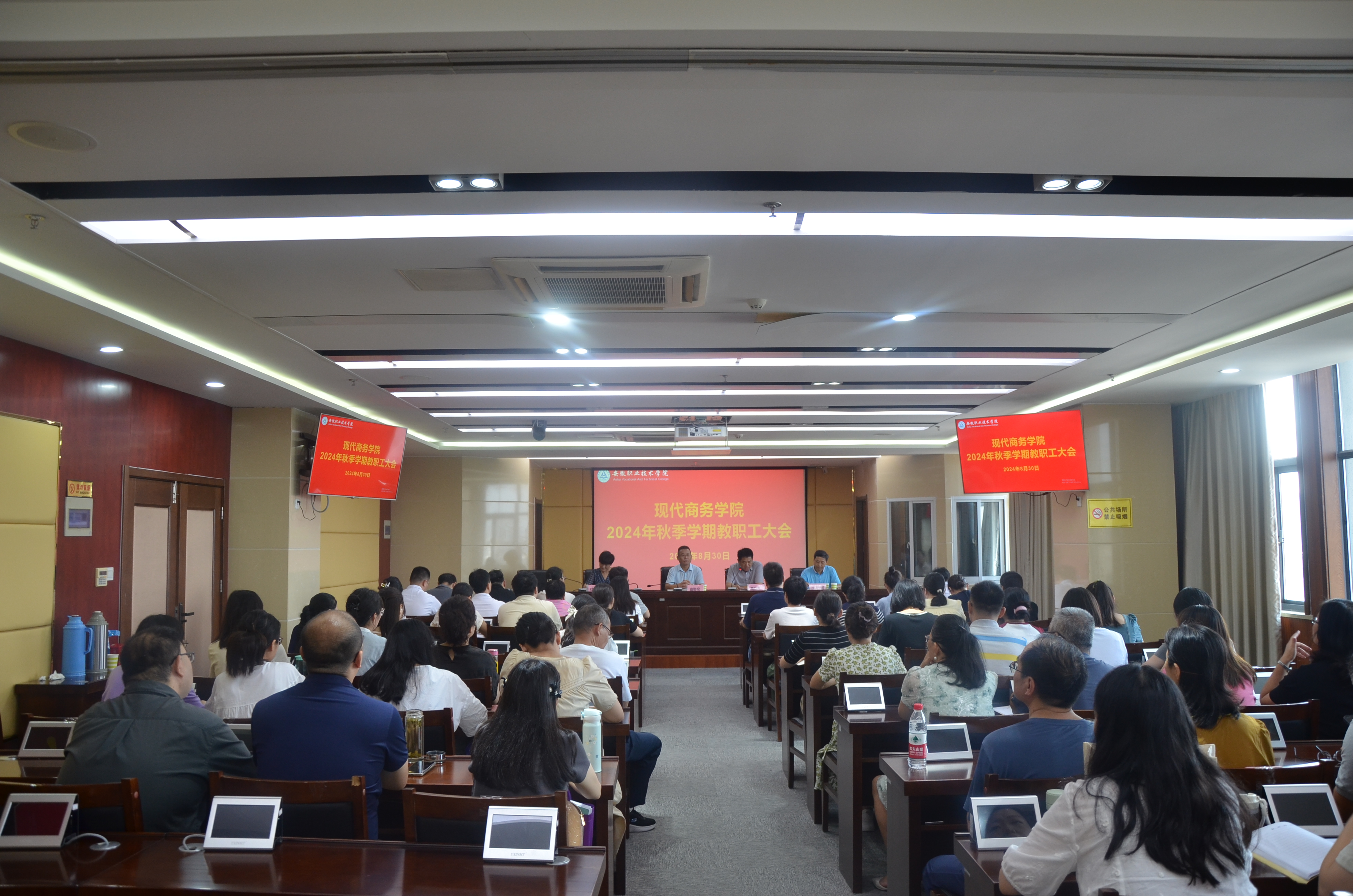 本网讯(现代商务学院)8月30日,学院召开2024年秋季学期全体教职工大会。学院党委委员、副院长宣岩松出席会议,学院党政负责人及全体教职工参加会议。会议由学院党总支负责人主持。
