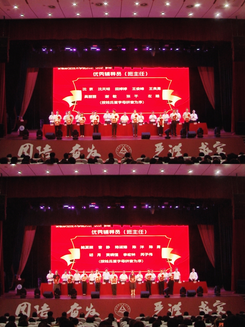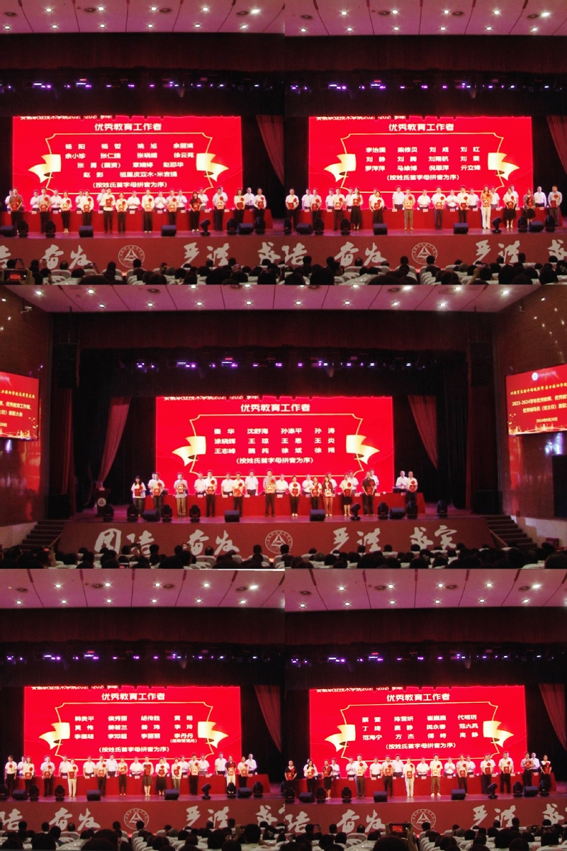 会上,党委委员、副院长张智清宣读了《关于向从事教育工作满三十年的教职工颁发荣誉证书的决定》。党委委员、副院长杨林国宣读了《关于表彰2023-2024学年“优秀教师”“优秀教育工作者”和“优秀辅导员(班主任)”的决定》。主席台领导为以上教师进行颁奖。同时,大会还对荣获安徽省三八红旗手的宿伟老师、2024年安徽省优秀教师的雷纶源老师和荣获安徽省教育工作先进集体称号的汽车工程学院予以表彰,党委书记李方泽为他们佩戴绶带、颁发锦旗。