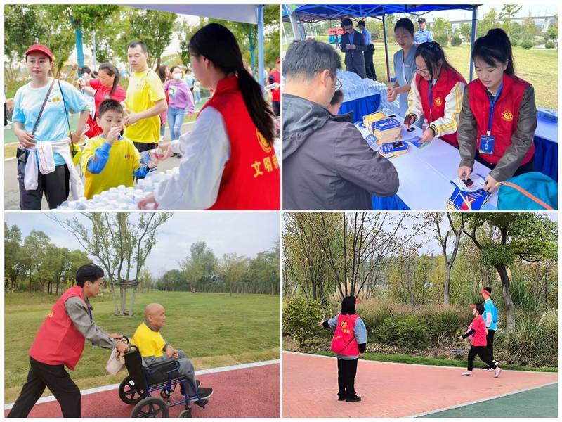 活动筹备期间,团委协同主办方对10公里赛道进行实地考察,熟悉并完善各服务点工作内容。同时按照赛事安排和服务岗位要求对志愿者进行培训,有效提升了志愿者的综合素质和服务能力。10月1日清晨,100名志愿者们身着统一着装,奔赴服务现场,分散在起终点、北广场、无人机科普展馆、亲子乐园、各区域补给点,做好沿途咨询指引、秩序维护、物资发放,打卡点登记、后勤保障等工作。他们热情洋溢、诚挚周到,暖心相伴、默默坚守,以蓬勃向上的精神面貌、认真负责的工作态度、专业高效的服务能力,为活动的顺利进行贡献安职力量。
