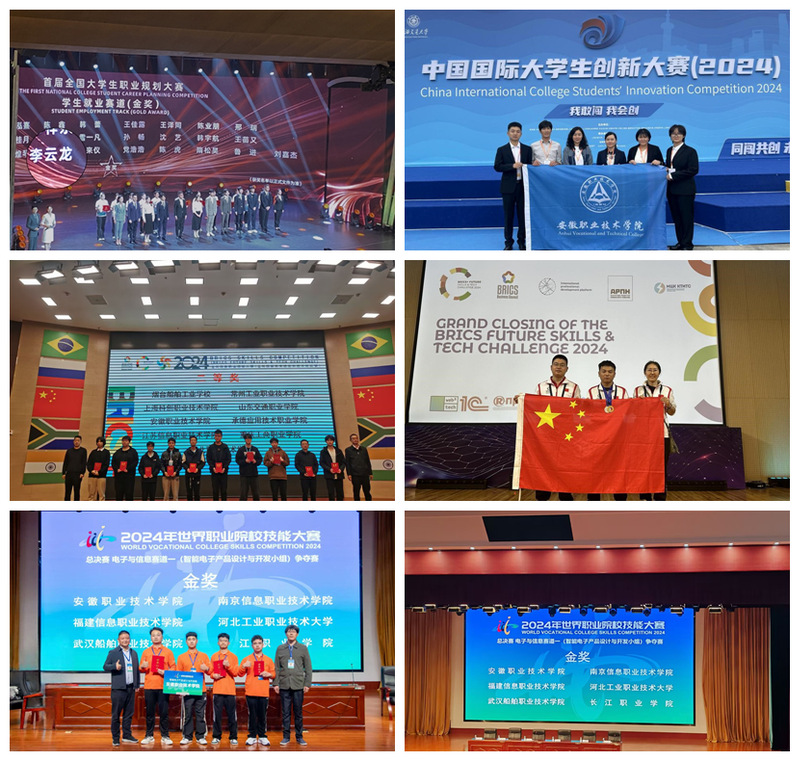 本网讯(教务处)今年以来,学院在多个国家级职业教育赛事中捷报频传,参赛师生凭借“专精特新”的专业追求和“勤朴勇毅”的优秀品质,在赛场上赢得了评委的一致好评,陆续获得首届全国大学生职业规划大赛1金1银、金砖国家职业技能大赛国际总决赛2银1铜、大学生创新大赛银奖和世界职业技能大赛2金2银6铜的傲人成绩,这不仅彰显了学院在职业教育领域的雄厚实力,更体现了学院高质量内涵式发展的办学成果,同时也为我省职业教育的发展贡献了“安职力量”。