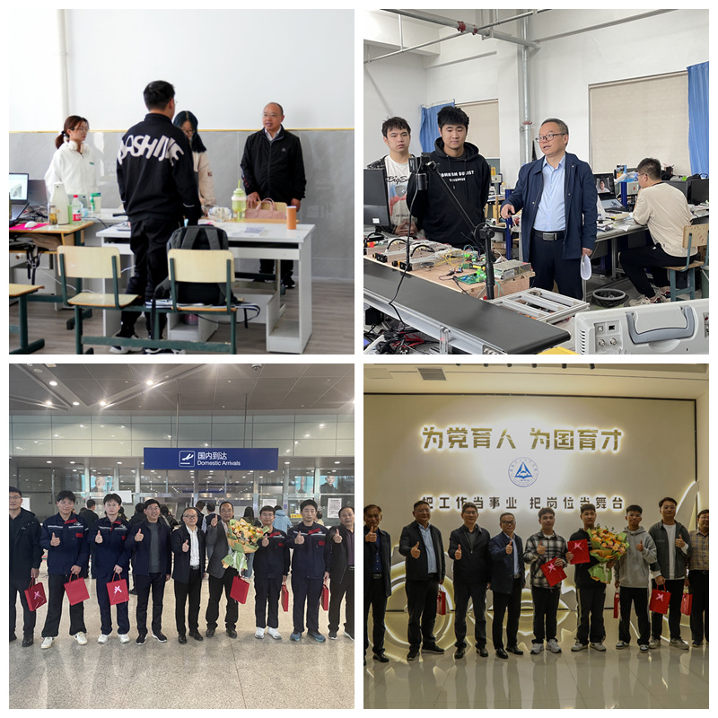 学院领导高度重视大赛准备工作,提前组织谋划,制定目标方针,将参与国家级赛事作为提升教学质量、增强学生实践能力的重要途径,为参赛团队提供方向性指导和政策支持。同时密切关注参赛工作进展,了解比赛组织、开展及备赛情况,并多次到大赛训练现场观摩指导,为备赛师生加油鼓劲,极大地激发了师生的参赛热情和斗志。在上海交通大学举办的中国国际大学生创新大赛决赛期间,学院党委书记李方泽亲临现场慰问指导参赛师生。在世界职业技能大赛总决赛争夺赛获奖师生返校后,党委副书记、院长盛鹏第一时间前往迎接慰问并表示祝贺。