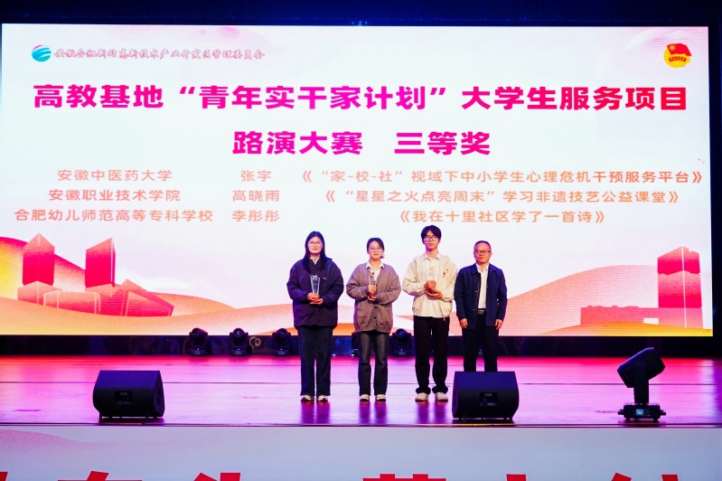 本网讯(团委)为持续深化校地合作共建,落实高教基地共青团联席会议机制,推动“青年实干家计划”,11月12日至13日,由新站高新区联合共青团安徽省委员会、共青团合肥市委员会,安徽职业技术学院共同主办的新站高新区高教基地“青年实干家计划”大学生服务项目路演大赛暨颁奖慰问仪式在亚星游戏网至立会堂成功举办。团省委副书记周宇,团省委学校部二级调研员汪文斌,安徽省团校副校长崔银,团市委副书记戴军,团市委学校部副部长毕小健,新站高新区管委会副主任刘自强,院党委副书记、院长盛鹏,党委委员、副院长宣岩松出席活动并为获奖学生颁奖,出席活动的还有各社区代表、重点企业代表以及高教基地各院校团委负责人。