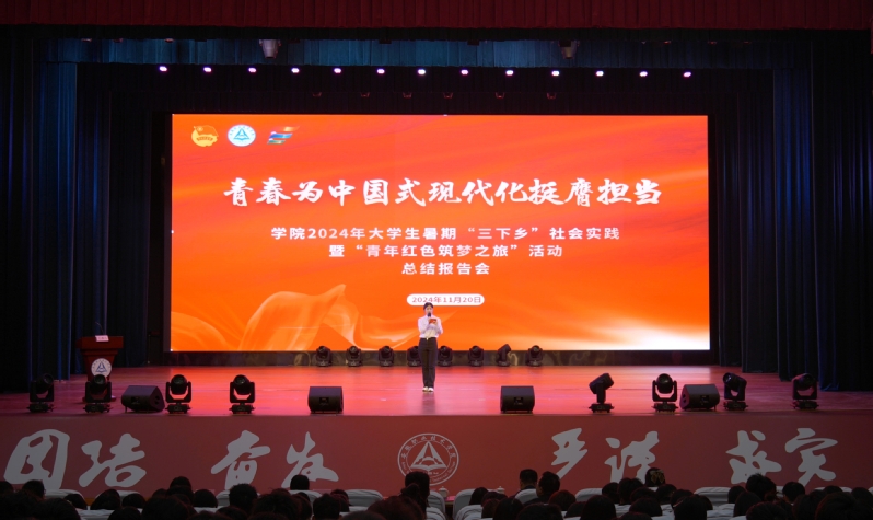 本网讯(团委)11月20日,学院2024年大学生暑期“三下乡”社会实践暨“青年红色筑梦之旅”活动总结报告会成功举办。院党委委员、副院长宣岩松,党委宣传部、学生处、就业与创新创业指导中心、团委等相关部门负责同志出席活动。团委专职团干、各二级学院团总支书记、实践团队全体师生志愿者、2024级新生代表参加了本次活动。